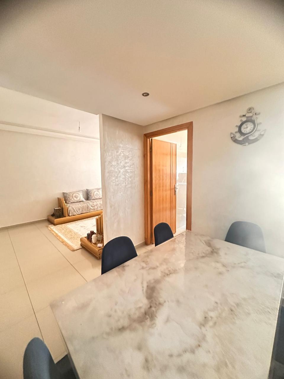 Situé au 1er étage de la résidence Les Terrasses 2 à El Mansouria, cet appartement bénéficie d’un emplacement central privilégié, à proximité immédiate de toutes les commodités et de la plage. L’appartement se compose de 2 chambres confortables, 2 salles de bain, un salon lumineux et une cuisine fonctionnelle, offrant un espace de vie agréable et pratique au quotidien. Idéal pour une location longue durée, dans un environnement vivant et proche de tout. 💰 Prix : 5500 DH / mois